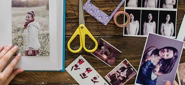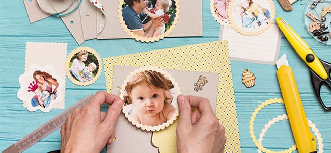 El scrapbooking, también llamado “álbum de recortes”, consiste en personalizar álbumes de fotos con técnicas de manualidades. Podemos usar papeles estampados y añadir cintas, pegatinas, sobres o frases decorativas. Pero no se trata simplemente de pegar imágenes con frases, sino de crear una composición que narre una historia.