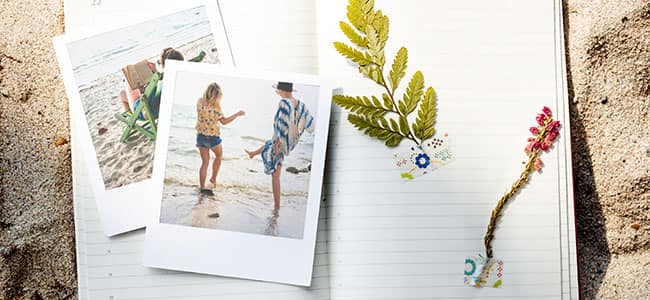 - Añade pegatinas temáticas (por ejemplo, de maletas o aviones para un álbum de viaje).